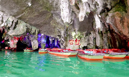 You’ll then glide through the heart of the Dragon Palace by boat, entering a majestic underground river system that has carved its way through the Karst landscape over millions of years. The atmosphere is ethereal, with towering stalactites shimmering in the soft cave lighting and casting reflections across the still water. As you drift along the cavern’s winding passages, you’ll encounter chambers so vast they feel like nature’s cathedrals. Your guide will point out fascinating rock formations resembling dragons, lions, pagodas, and flowing curtains, each with a local legend attached. The journey is quiet and contemplative, broken only by the rhythmic splash of the paddle and the occasional drip of mineral-rich water from above. It’s a surreal, sensory-rich moment that invites you to slow down and simply absorb the beauty and silence of this ancient underworld.