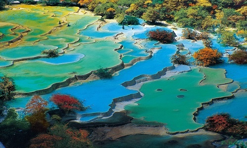 Next, you will continue to the enchanting Five-Color Pond, a small yet mesmerizing jewel hidden deep within the pristine forest of Jiuzhaigou. Though modest in size—covering less than 100 square meters—this lake captivates visitors with its crystal-clear waters that shimmer in an ever-changing palette of blue, emerald, and aquamarine, like nature’s own artwork. Fed by underground springs rich in minerals, the pond’s vibrant hues shift subtly with the movement of light and viewing angles, creating a magical, dreamlike scene that feels almost otherworldly. Revered as the “soul” of Jiuzhaigou, the pond carries deep cultural and symbolic significance for the local Tibetan people, embodying purity and natural harmony. As you take in its beauty, your guide will point out the delicate transitions of color and share the legends and stories associated with this sacred place, making your visit not only a feast for the eyes but also a journey into the spiritual heart of the valley.