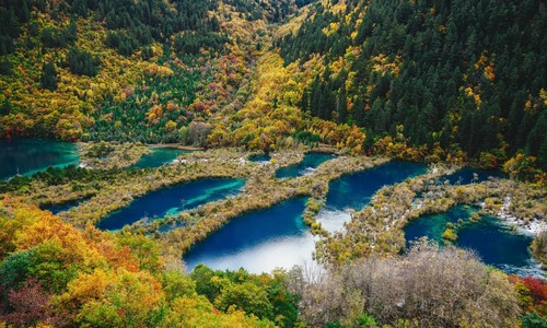 Next, marvel at the ethereal beauty of Five-Color Pond, one of the park’s most iconic small lakes. Despite covering just over 5,000 square meters, this hidden gem stuns visitors with its shimmering palette of turquoise, emerald, sapphire, and cobalt hues. Your guide will explain how the lake’s colors result from natural calcium carbonate deposits and algae under crystal-clear glacial water. As you stroll along the viewing platform, you’ll learn how this site is considered sacred in Tibetan culture, often associated with local deities and prayers.